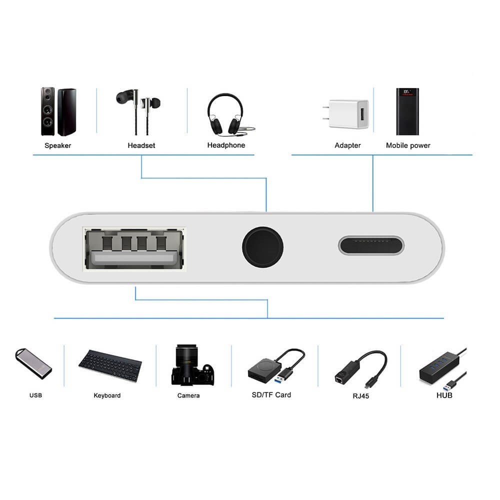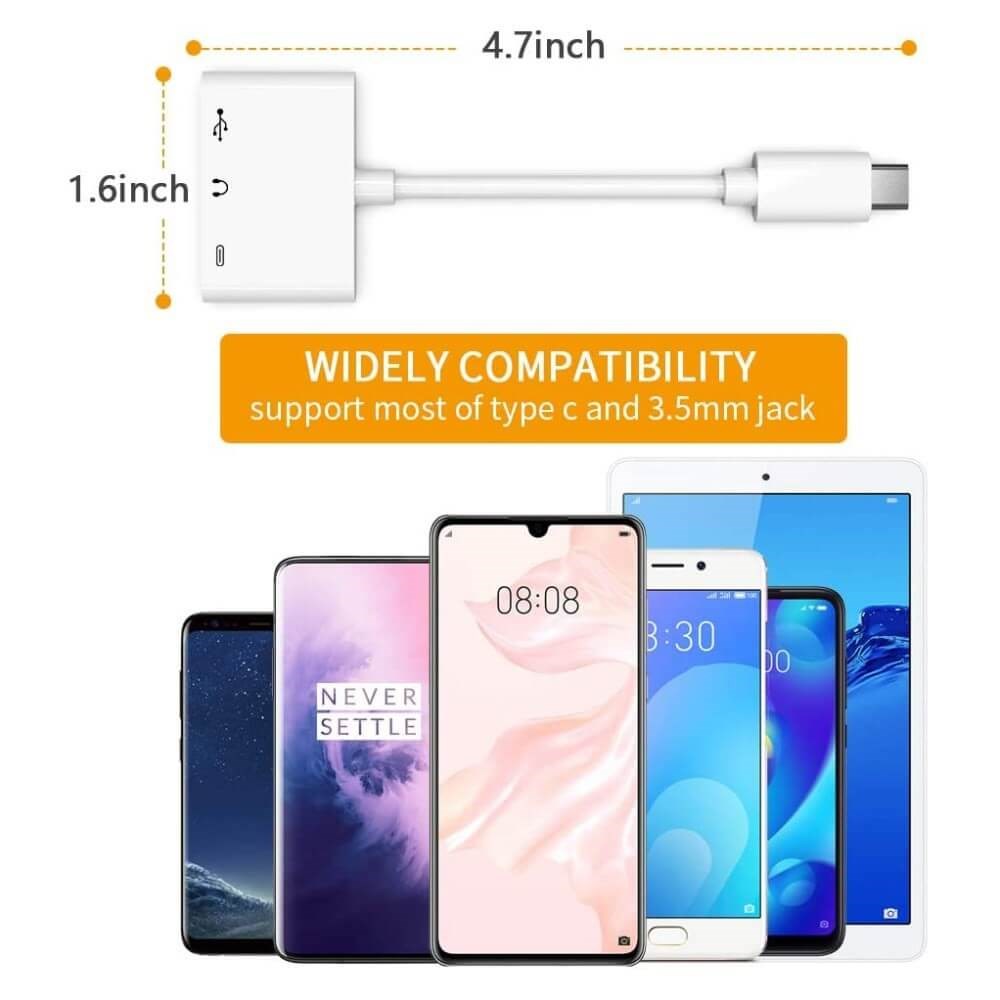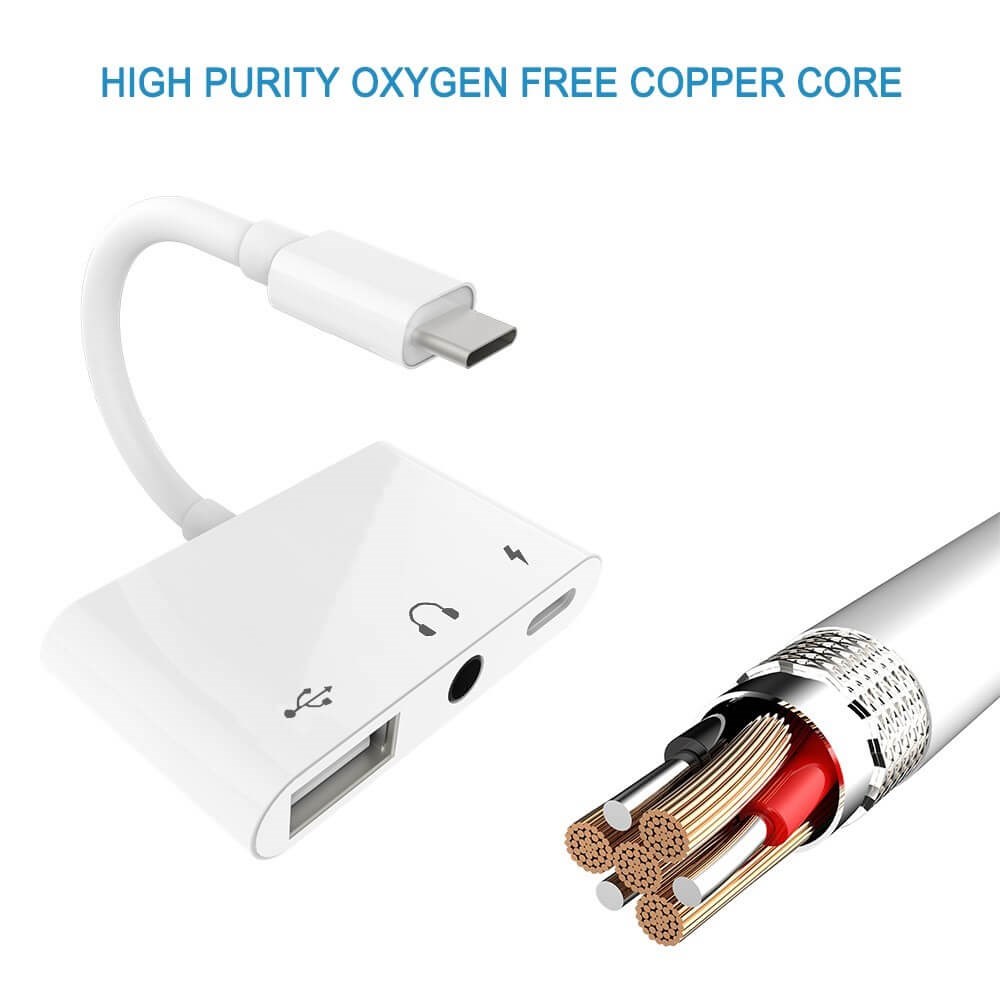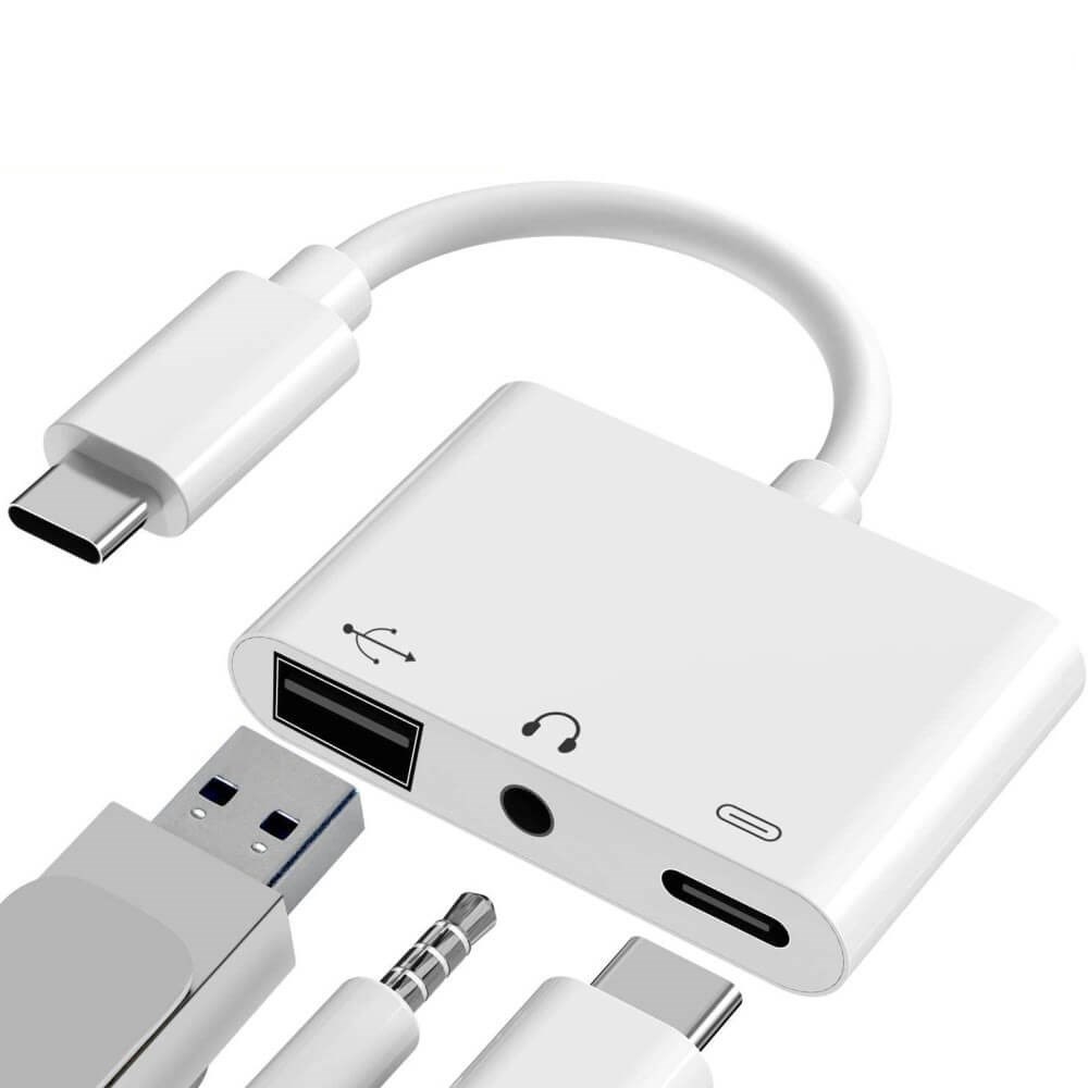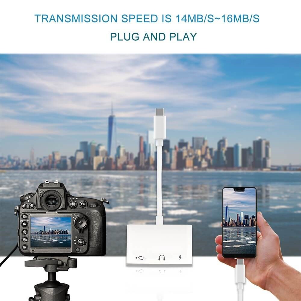 Du får 3-i-1-adapter för typ-C två 3,5 mm-jack Audio USB 3.0 / 2.0 digitalkameraläsare - OTG-adapter med laddare