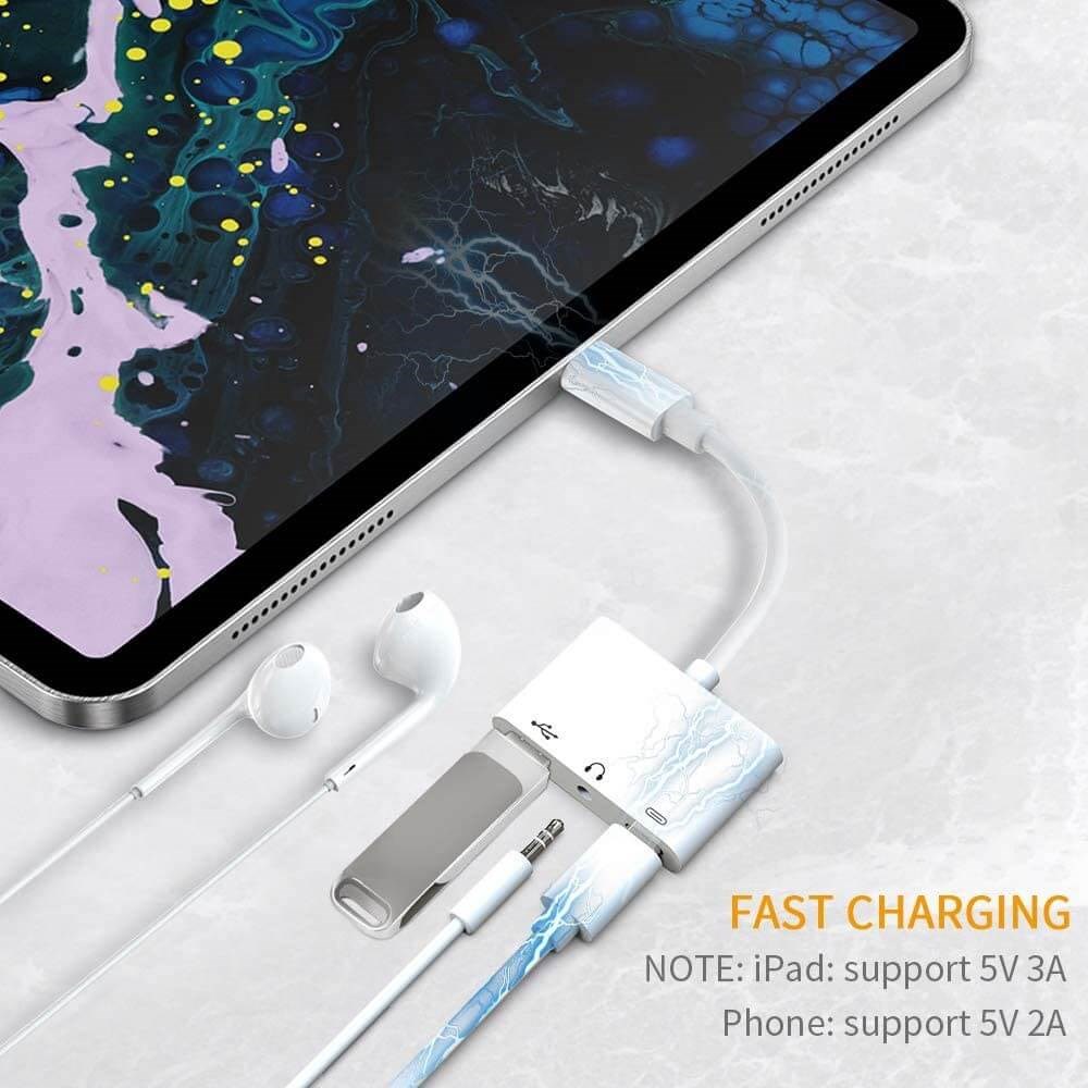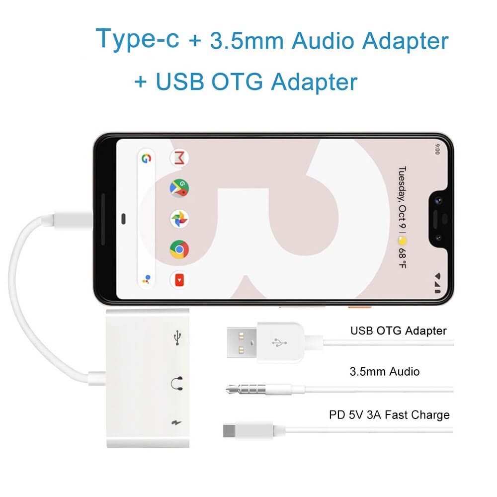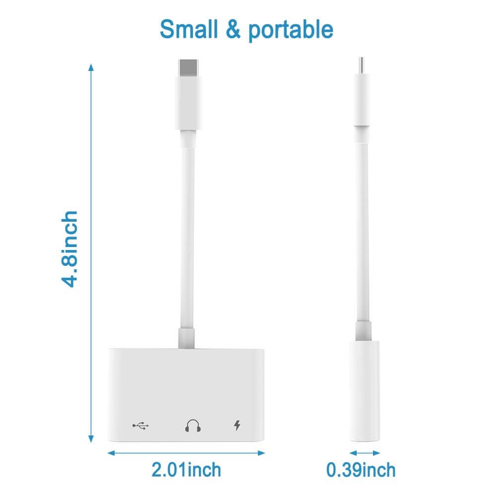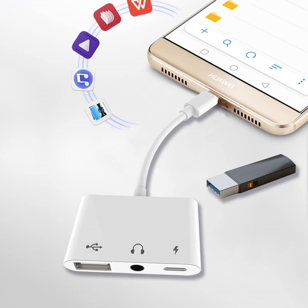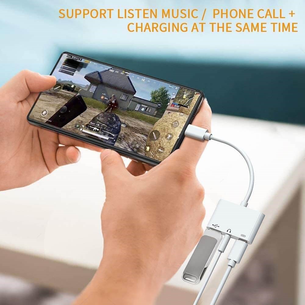 Du får 3-i-1-adapter för typ-C två 3,5 mm-jack Audio USB 3.0 / 2.0 digitalkameraläsare - OTG-adapter med laddare