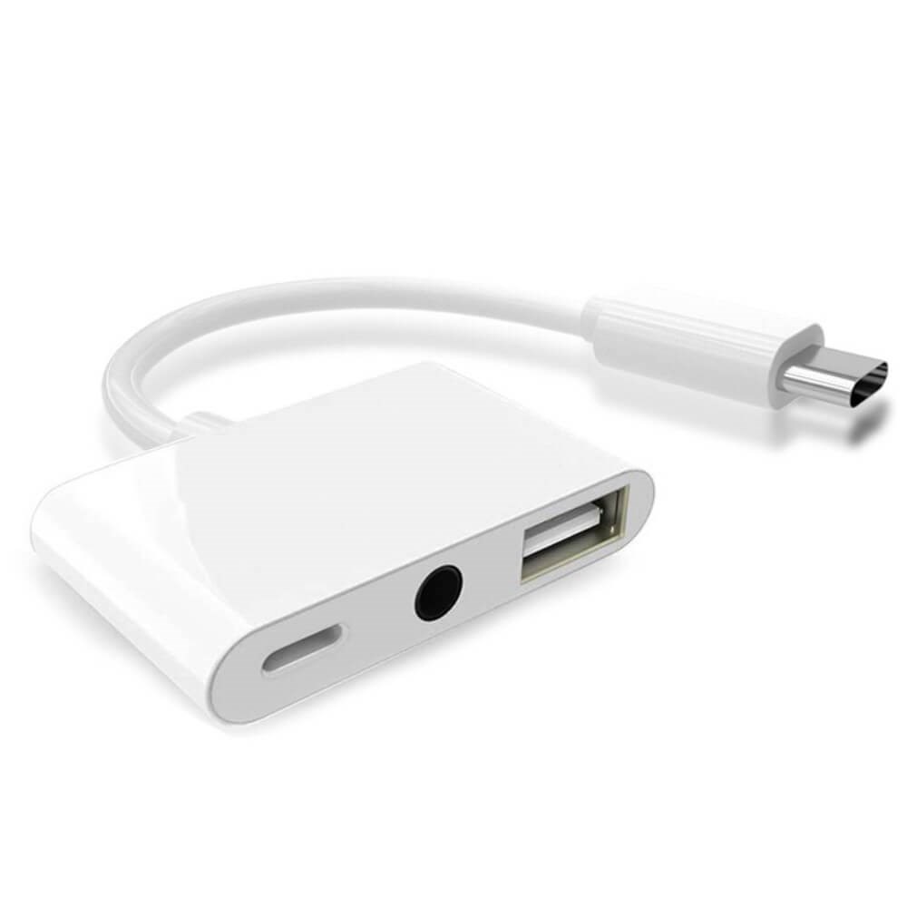 3-i-1-adapter för typ-C två 3,5 mm-jack Audio USB 3.0 / 2.0 digitalkameraläsare - OTG-adapter med laddare 3-i-1-adapter för typ-C två 3,5 mm-jack Audio USB 3.0 / 2.0 digitalkameraläsare