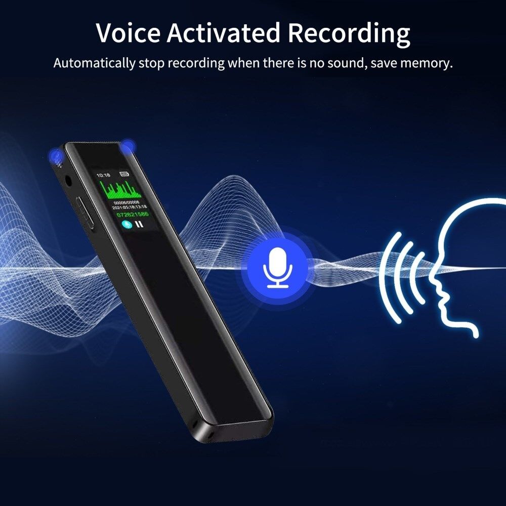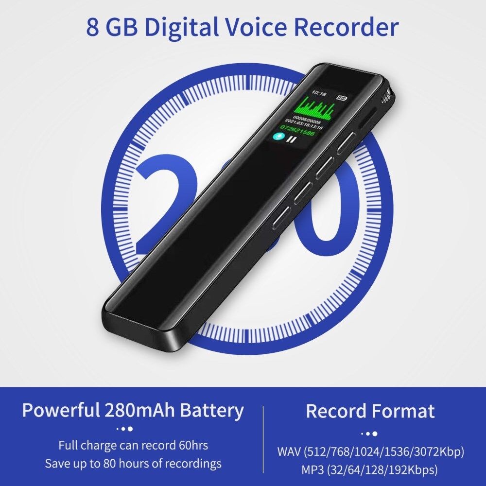 8 GB Digital Röstinspelare - 60 Timmars Röstaktiverad Inspelningsenhet - Diktafon - MP3-spelare - 3072KBPS HD - Liten Bandspelare för Föreläsningar, Möten, Intervjuer