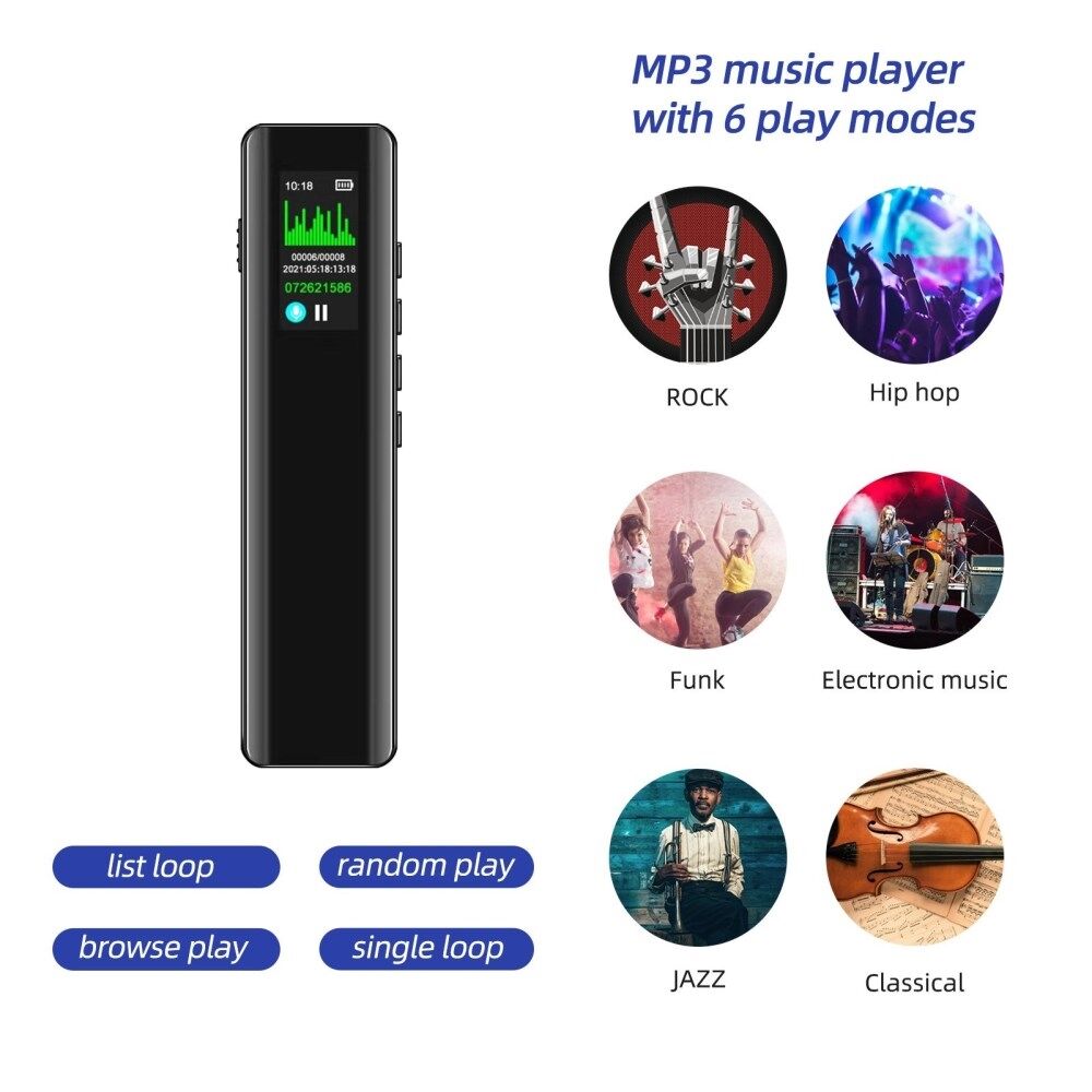 Flera uppspelningslägen - Stöd listslinga, slumpmässig uppspelning, bläddringsspel, enkel loop. 3,5 mm jack hörlurar för att lyssna på förlustfri HD-ljudkvalitet!