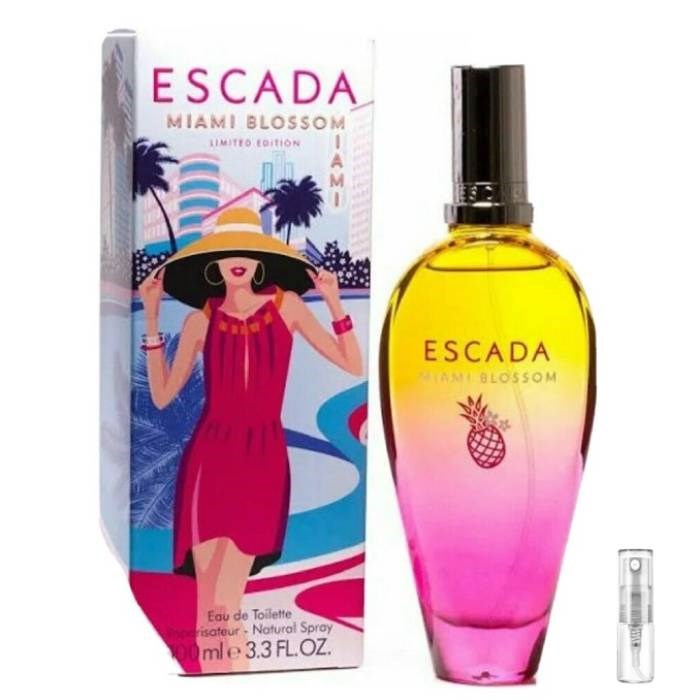 Miami Blossom från Escada är en blommande fruktig doft för kvinnor, introducerad 2019. Den inkluderar noter av vattenmelon, blåbär, apelsin, ananas, tiareblomma, jasmin, tuberos, ambroxan, mysk och sandelträ.