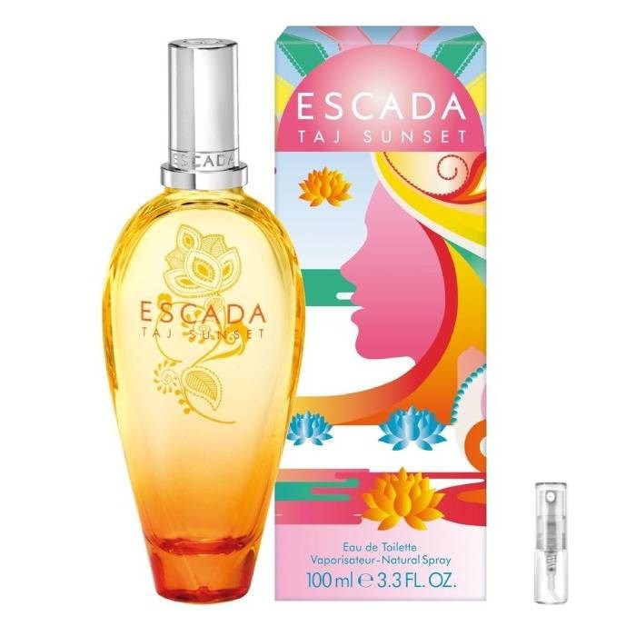Taj Sunset från Escada är en blommande fruktig doft för kvinnor, släppt 2011. Den blandar mango, nektarin, blodapelsin, hallon, stjärnäpple, näckros, lotus, kokos, mysk och sandelträ.