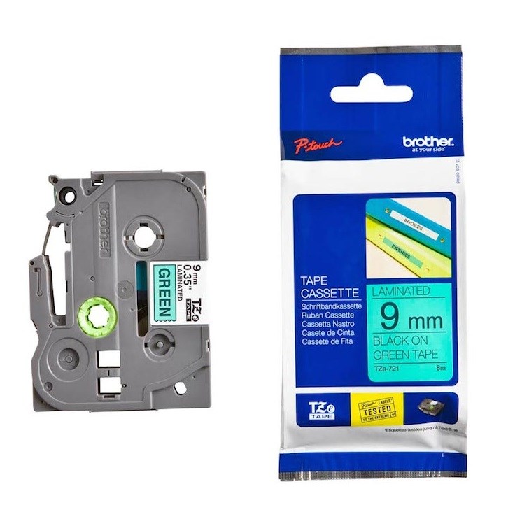 Högkvalitativ Brother-kompatibel TZc-721 - svart text på grön tejp 9 mm x 8 m för Brother P-Touch etikettskrivare