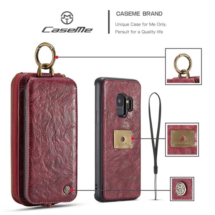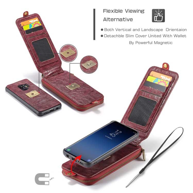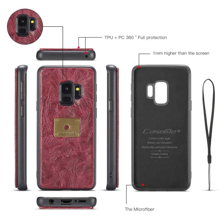 CaseMe Premium Läderplånbok med magnetfodral för Samsung Galaxy S9 - Röd