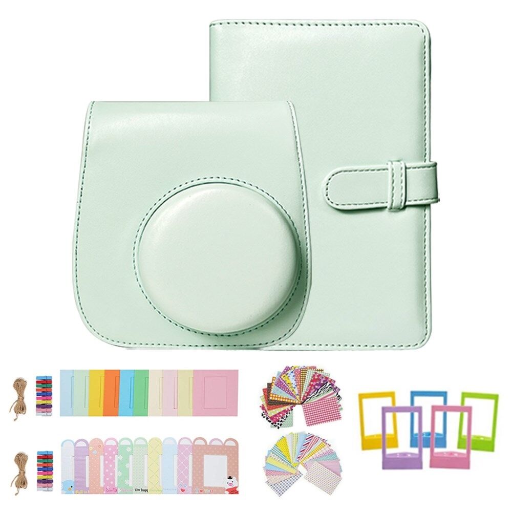 För FujiFilm Instax Mini 12 / 11 / 9 / 8 Kameratillbehör 7-i-1 paketsats Inkluderar fodral, filmklistermärken, skrivbordsramar, hängande ram - Mintgrön