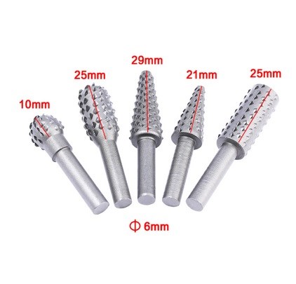 Fräsenheterna levereras i storlekarna 10 mm, 21 mm, 2 x 25 mm och 29 mm i kulform, oval form, cylinderform respektive 2 koniska former.