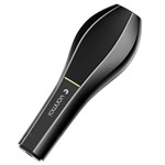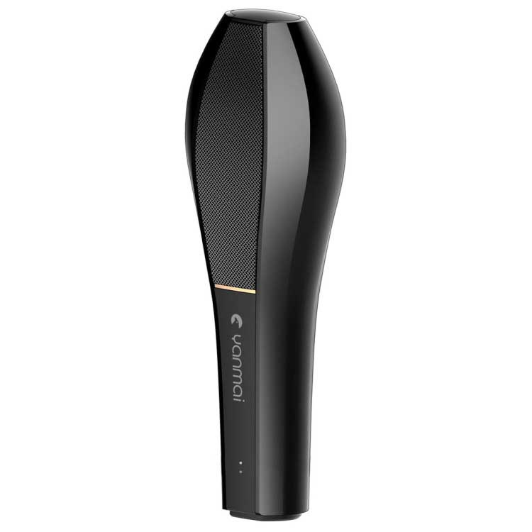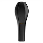 En läckert robust design som består av en handhållen mikrofon i svart med grått ruthuvud och ett svart stativ, som tillsammans kan användas som en bordsmikrofon.