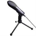 Mikrofonen har volymjustering och en 1,35 meters kabel. Stativet är justerbart.
