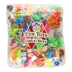 Gör en överraskningspåse med dessa 100 presenter! Yoyos, visselpipor, hoppande grodor, skallror, sambabollar, trappfjädrar, studsbollar, klockor och mycket annat roligt finns i bagaget med 100 presenter. En bra idé för en klänningsmarknad eller under en fest!