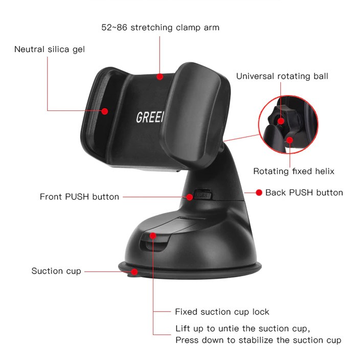 Green Series Roterande 360 graders Universal bilhållare Smart mobilhållare för bilen.
