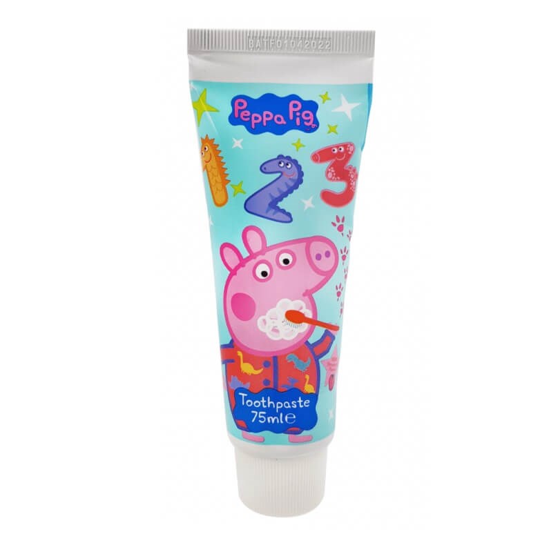 Tandkrämen är dekorerad med en bild av Peppa Pig och har en mild smak av mynta och jordgubb.