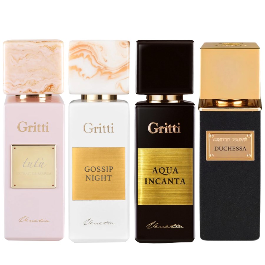 Duchessa av Gritti är en blommig fruktig gourmand doft för alla. Släpptes 2020, den inkluderar saffran, svarta körsbär, bitter apelsin, persika, nejlikor, choklad, jasmin, söt mandel, iris och brun socker.