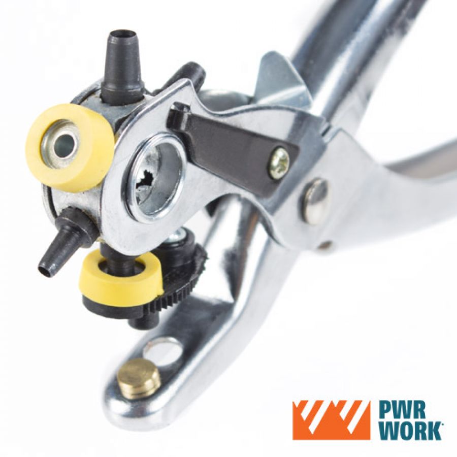 Om du ofta missar det sista hålet i bältet kan du göra det själv med denna Hultang. Du kan välja mellan 6 hålstorlekar genom att vrida huvudet på tangen.