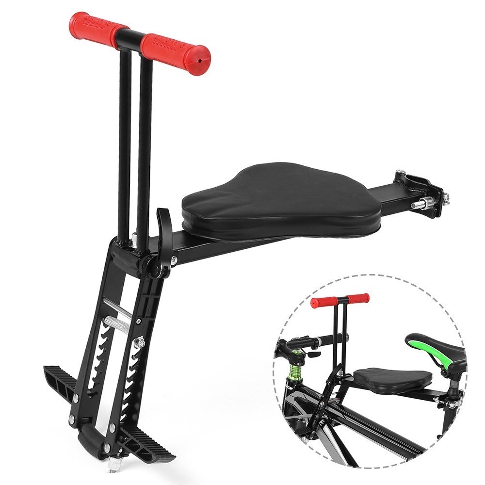 Hopfällbar cykelstol för barn - med handtag & fotstöd Denna cykelframsäte gör att du kan hålla ett öga på ditt barn och vägen samtidigt. Sitsen kan fällas ihop för enkel förvaring och transport.