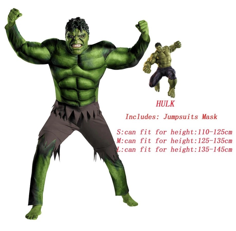 HULK Kostym Barn - Inkl. Mask + kostym - liten (110-125 cm) Vill du vara en av de supercoola killar och tjejer som befriar världen från de onda skurkarna, då kan vi hjälpa dig. Vi erbjuder många coola superhjältekostymer.