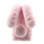 Fodral i fuskpäls med lurviga 3D-kaninöron och svansdesign gör din telefon modern och iögonfallande.