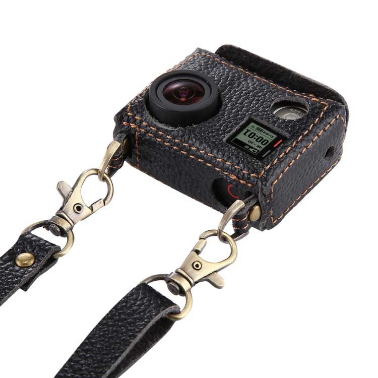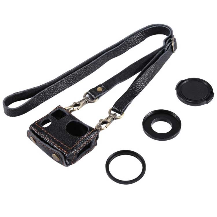 PULUZ® Väska i läder med 40,5 mm UV-lins för GoPro HERO 4 - Svart. En skyddande kameraväska med nackrem. En vackert färdig design i äkta koläder med utvändiga sömmar och fina detaljer för GoPro HERO 4.