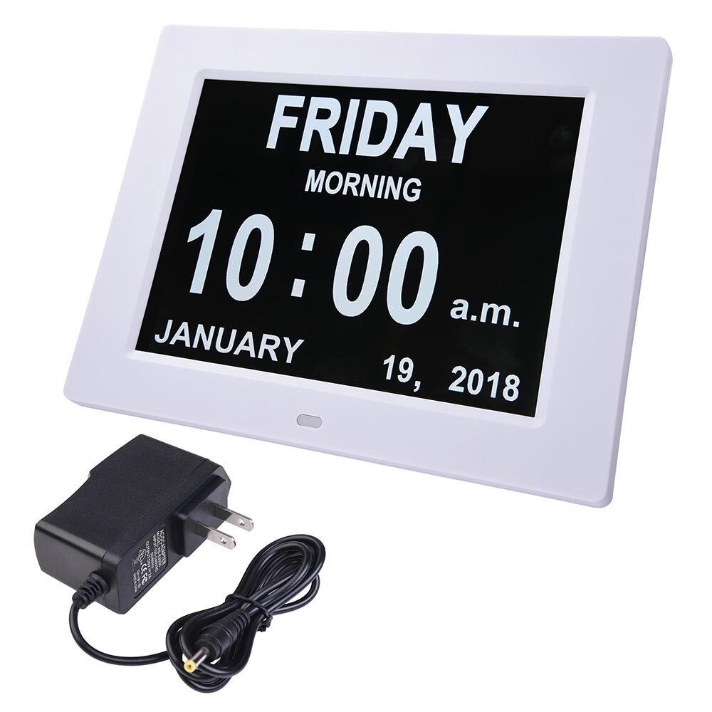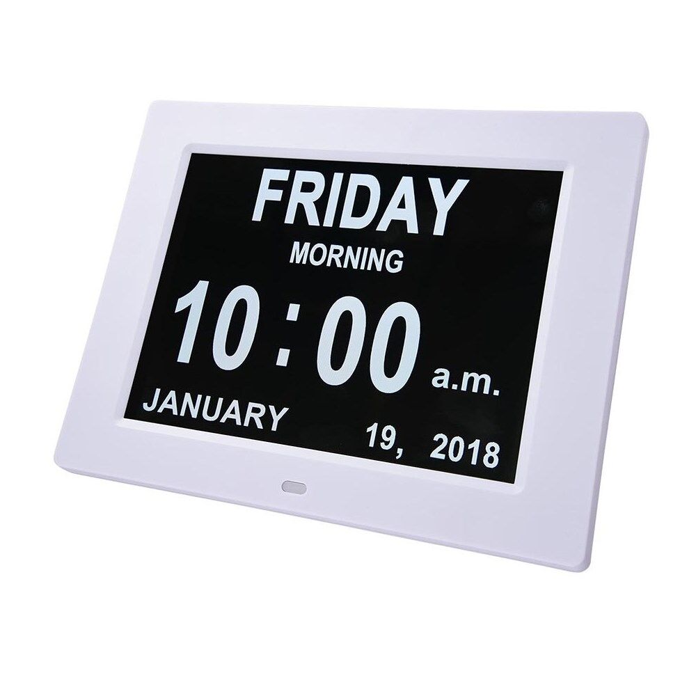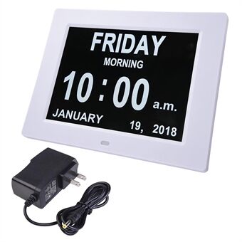 Denna unika 8-tums högupplösta digitala väckarklocka kan tydligt visa tid, veckodag, alla dagar i veckan, månad och veckodatum utan förvirrande förkortningar.