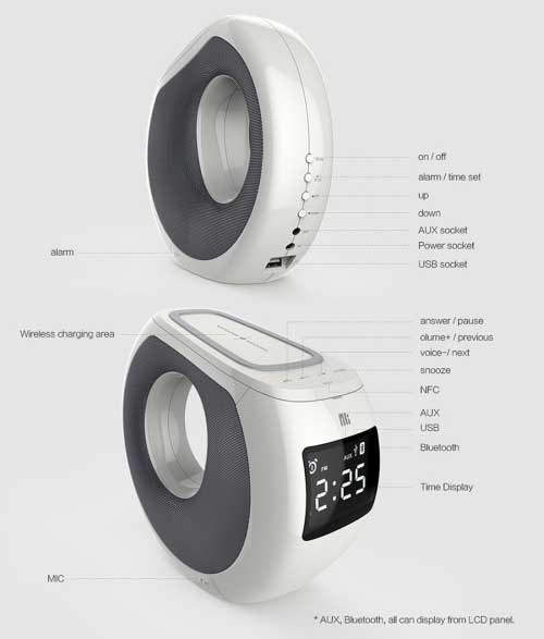 En vacker och fantastisk design med många detaljer och funktioner samt en LED-display som visar tiden. Med en mängd knappar för funktioner som volymkontroll, handsfreesamtal och alarm/tidsinställning är den idealisk för användning med din smartphone.