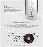 Den inbyggda NFC-tekniken gör att du kan para ihop din smartphone eller surfplatta genom att hålla den över högtalaren. Bluetooth-räckvidden är upp till 10 meter och du kan spela musik via Bluetooth och AUX-anslutning.