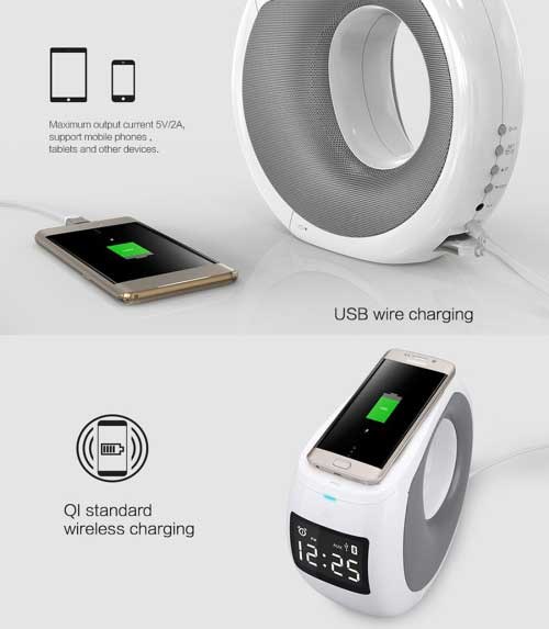 Denna högtalare har även trådlös laddning av din smartphone, om den har Qi-funktionen.