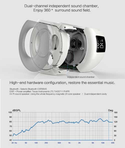 Med inbyggd klocka och larm är det självklart att även ha denna superhögtalare stående på nattduksbordet.