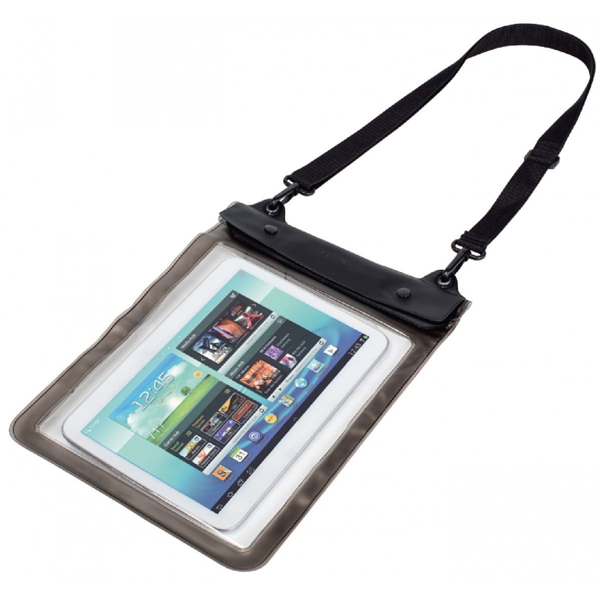 Denna vatten- och dammbeständiga hylsa passar tabletter upp till 10". Anslut hörlurar, hörlurar eller ett headset genom passagen avsedd för en ljudkabel med 3,5 mm jackkontakt och lyssna på t.ex. för musik eller titta på video, medan din surfplatta förblir i sitt fodral helt skyddad mot vatten och damm