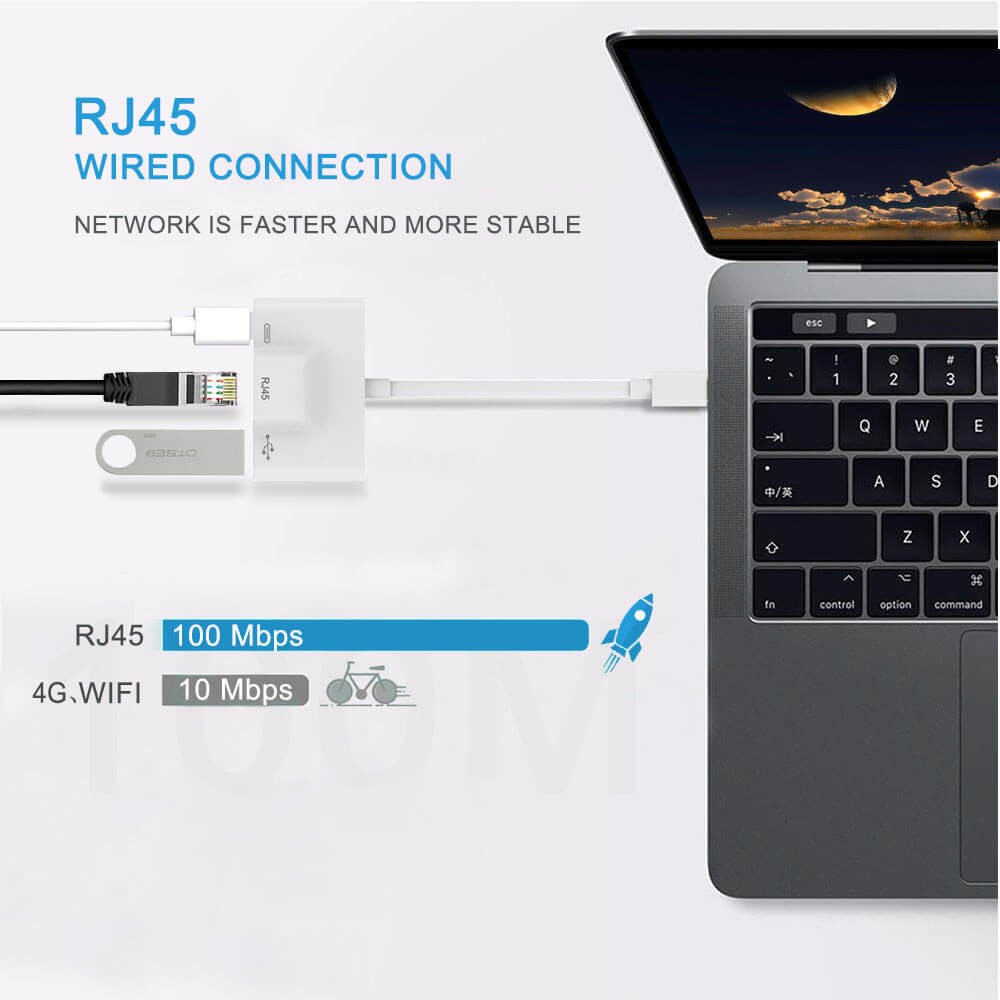 Typ-C till RJ45 Ethernet OTG-adapter Trådbundet LAN-kort Ethernet USB OTG HUB HD-videoadapter Typ-C hane till RJ45 Ethernet OTG-adapter.