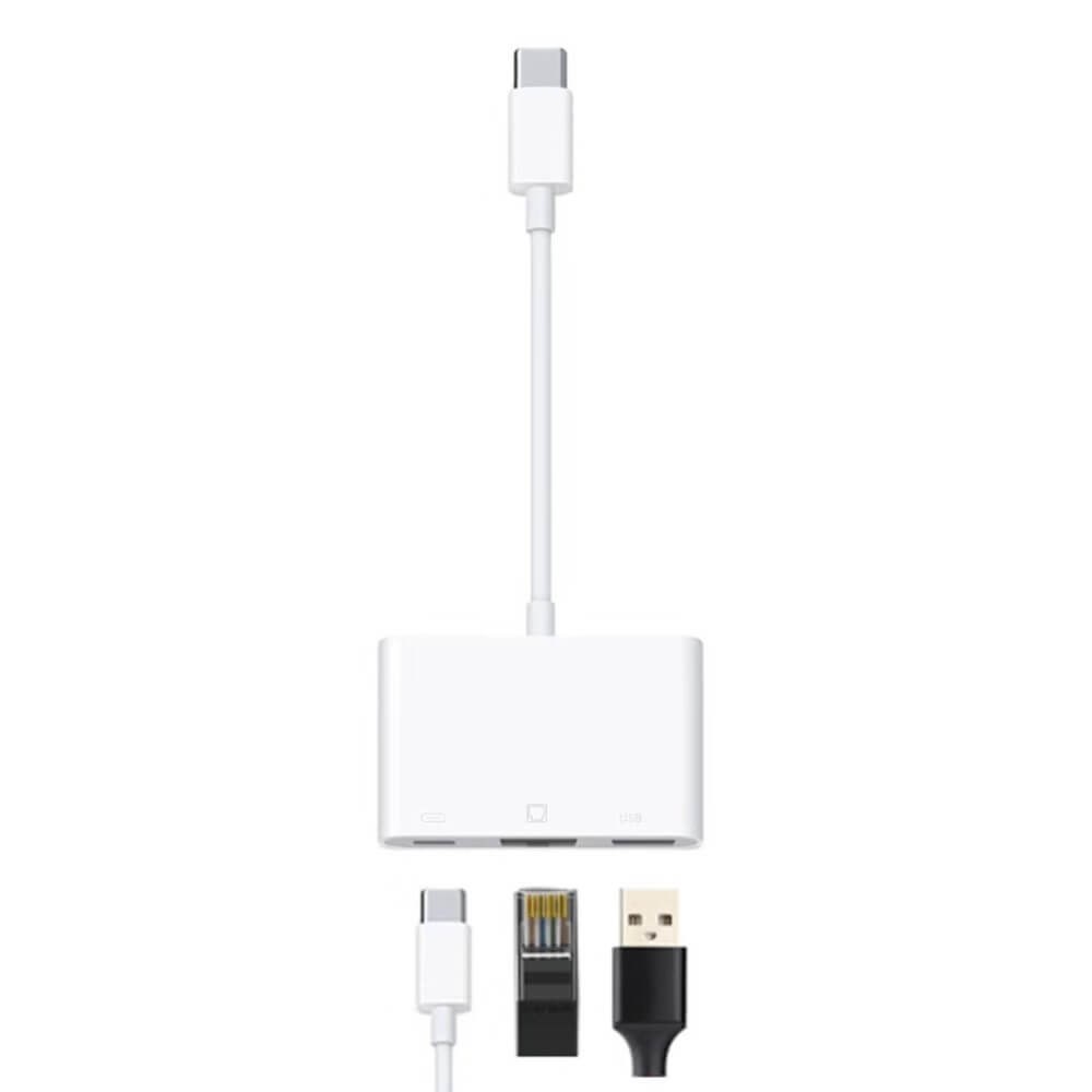 Typ-C till RJ45 + USB + Type-C OTG-adapterkabel