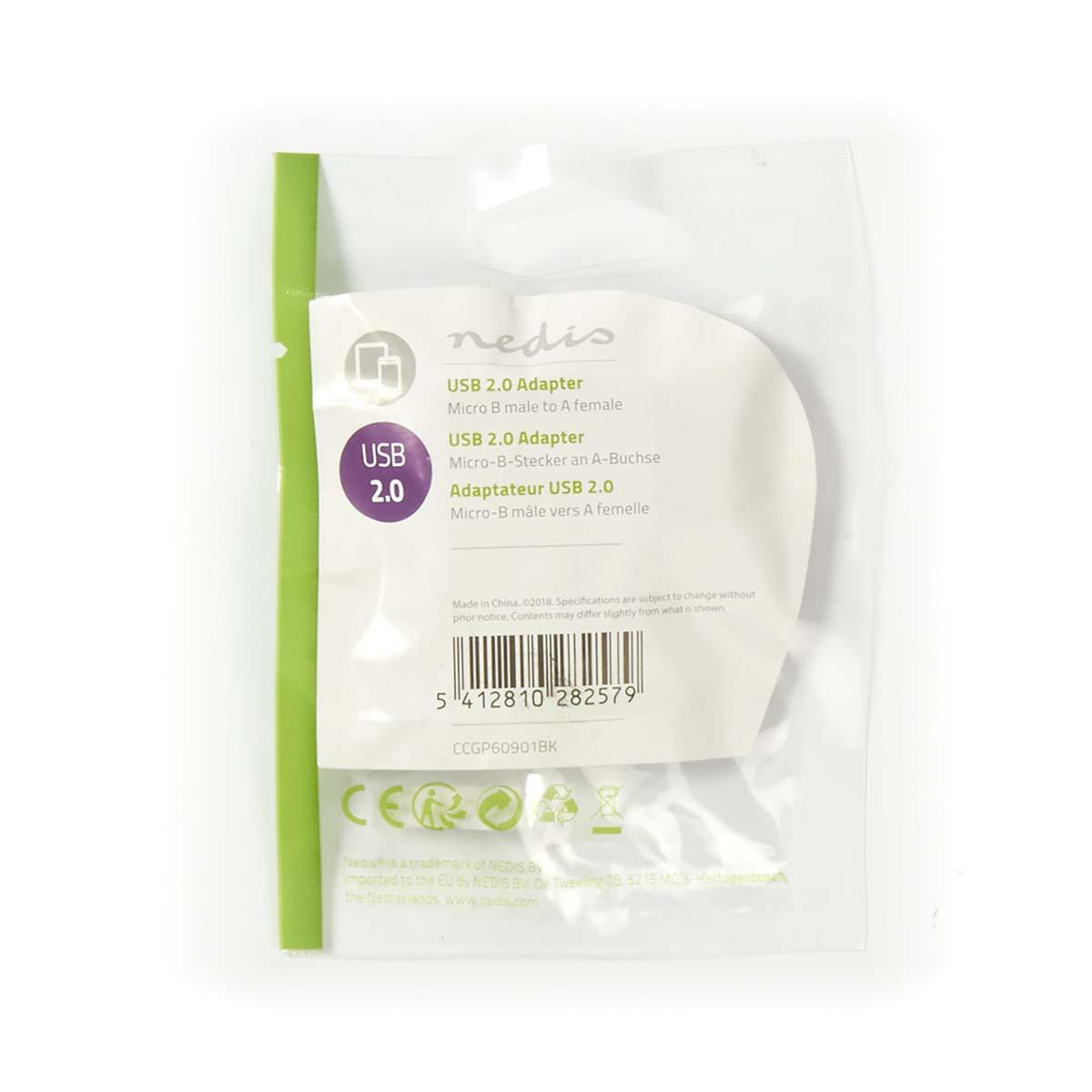 USB Micro-B-adapter | USB 2.0 | USB Micro-B hane | USB-A hona | 480 Mbps | OTG | Nickelpläterad | PVC | Svart | Kuvert