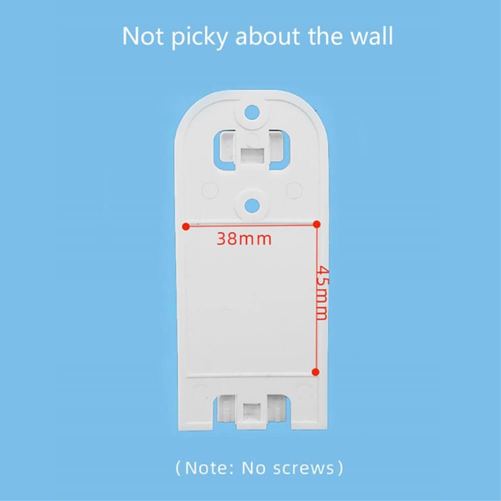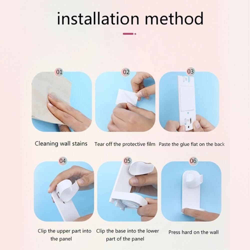 Vägghållaren monteras enkelt med den medföljande tejpen - helt utan att använda skruvar.